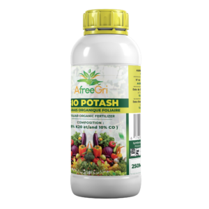 AfreeGri Bio Potash comble les carences en potasse des plantes et des cultures, favorisant une croissance optimale et une capacité à résister aux maladies. La composition de Bio Potash, contenant des acides organiques, des micronutriments chélatés et des vitamines, améliore la production des cultures